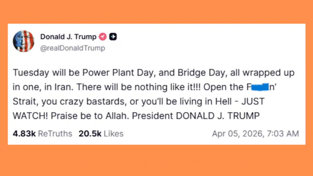 “A whole civilization will die tonight, never to be brought back again. I don’t want that to happen, but it probably will. However, now that we have Complete and Total Regime Change, where different, smarter, and less radicalized minds prevail, maybe something revolutionarily wonderful can happen, WHO KNOWS? We will find out tonight, one of the most important moments in the long and complex history of the World. 47 years of extortion, corruption, and death, will finally end. God Bless the Great People of Iran!” Posted on April 7, 2026.